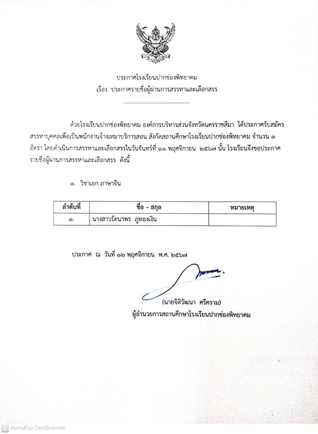ข่าวประชาสัมพันธ์ ประกาศรายชื่อผู้ผ่านการสรรหาและเลือกสรร วิชาเอกภาษาจีน 12 พฤศจิกายน 2567 jiraporn supada
