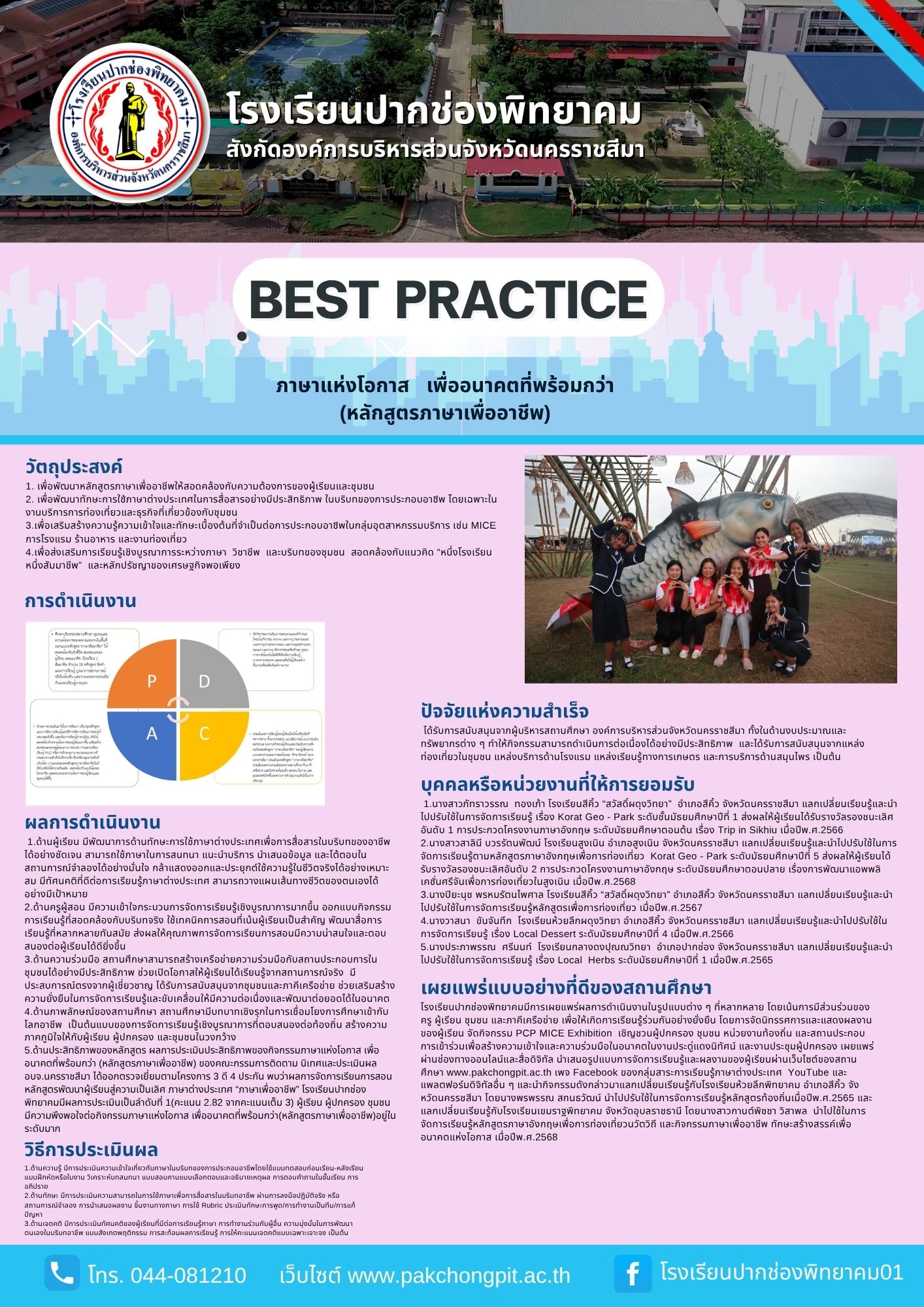 ข่าวประชาสัมพันธ์ งานประกันคุณภาพการศึกษา Best Practice ตัวชี้วัดที่ 3.1 ภาษาแห่งโอกาส เพื่ออนาคตที่พร้อมกว่า (หลักสูตรภาษาเพื่ออาชีพ) 6 มกราคม 2568 jiraporn supada