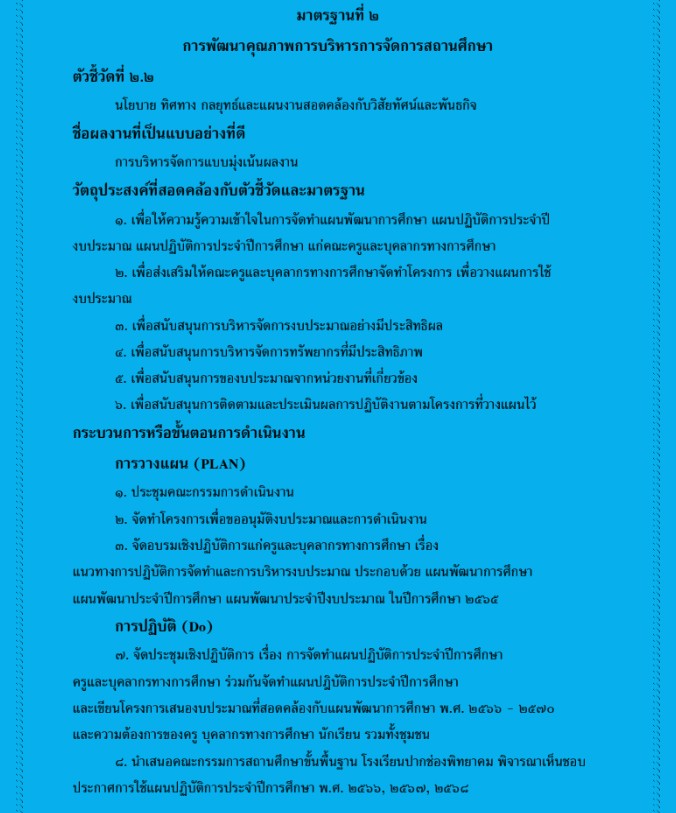 ข่าวประชาสัมพันธ์ งานประกันคุณภาพการศึกษา Best Practice ตัวชี้วัดที่ 2.2 การบริหารจัดการแบบมุ่งเน้นผลงาน 6 มกราคม 2568 jiraporn supada