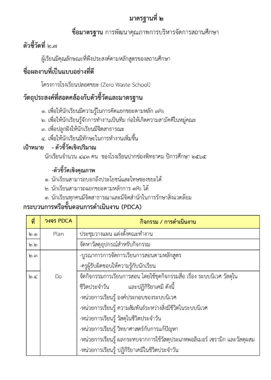 ข่าวประชาสัมพันธ์ งานประกันคุณภาพการศึกษา Best Practice ตัวชี้วัดที่ 2.7 โครงการโรงเรียนปลอดขยะ (Zero Waste School) 6 มกราคม 2568 jiraporn supada